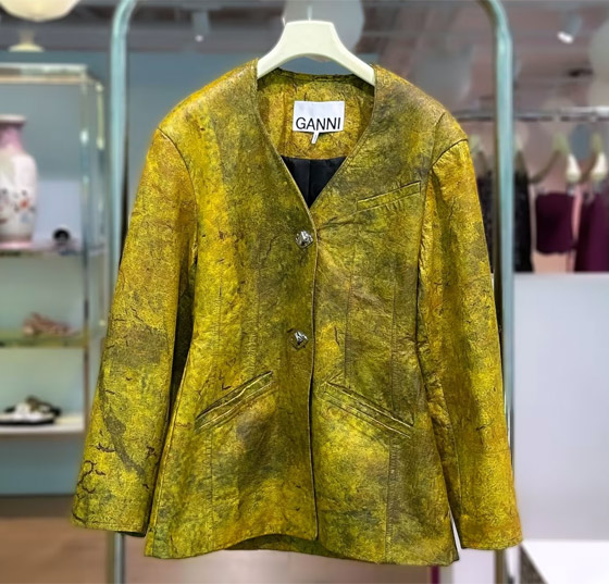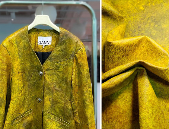 علامَ تحصل عند تغذية البكتيريا بمخلفات الفاكهة الصناعية؟ لن تكون إجابتك الأولى "سترة جلدية صفراء".. غير أنّ هذا تحديدًا ما نتج عن التعاون بين علامة الأزياء الدنماركية Ganni وشركة المواد الحيوية المكسيكية Polybion. وتشكّل السترة نموذجًا أوليًا فريدًا من نوعه يُراد منه أن يكون دليلاً على مفهوم مجموعات الأزياء المستقبلية التي ستكون مصنوعة من السيليلوز البكتيري، عوض محاولة تكرار خصائص الجلد، فهي مصممة لتبدو كأنها مادة جديدة تمامًا.