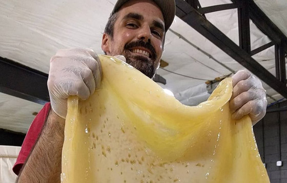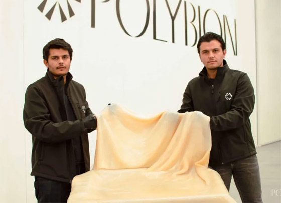 ثم حدث أمر غريب. يتذكر غوميز-أورتيغوزا أنه "منذ حوالي خمس سنوات، دخل أحد أصدقائي إلى مكتبي وأراني جرة كومبوتشا". وقال لي: "لقد عزلنا البكتيريا الأولى لدينا من هذا المشروب". وكومبوتشا مشروب شاي مخمّر يحظى بشعبية متزايدة، وتسمّى الكتلة الحيوية البكتيرية المستخدمة في صنع السترة، سيليوم، المأخوذة من تلك الجرة. منذ ذلك الحين، ركزت شركة Polybion بالكامل تقريبًا على التخمير البكتيري، حيث اعتبرته مصدرًا جديدًا واعدًا وبديلًا عن الجلود عالية الجودة.