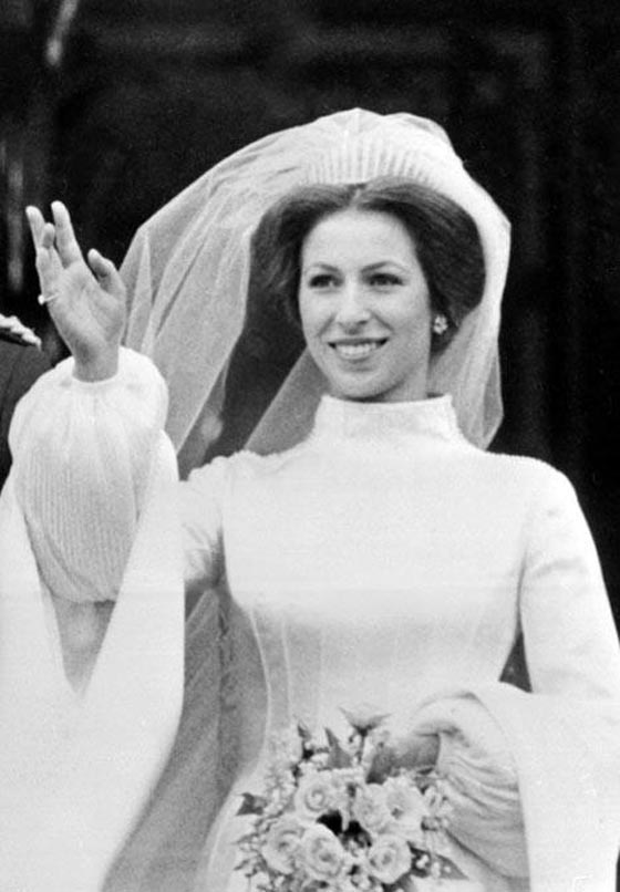 وبالحديث عن البساطة، نافست الأميرة آن، الابنة الوحيدة للملكة إليزابيث، بفستان زفافها الحريري الذي خلا من التطريز والدانتيل أيضاً. اكتفى المصمم مورين بيكر، صاحب أزياء سوزان سمول، بأطراف مطرزة باللآلي خصوصاً على الياقة العالية والأكمام التي أتت على شكل بوق يغطي أكماماً من الشيفون، ويعطي للفستان طابعه التيودوري الأنيق الذي يحاكي تصاميم فساتين الزفاف إبان عصر الملكة إليزابيث الأولى.