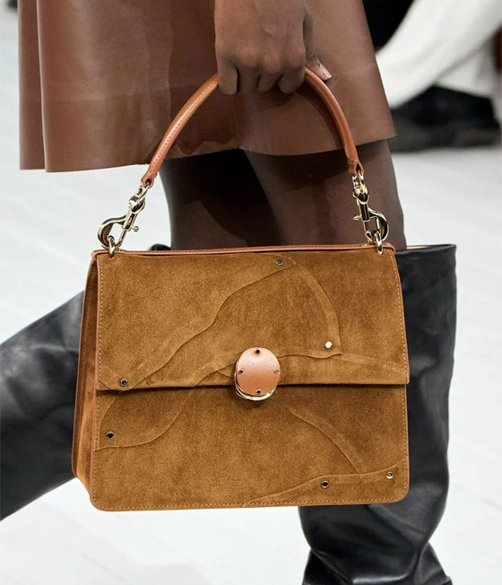 حقائب القطيفة هي من التصاميم التي تفضّلها المرأة خاصة في موسم الخريف والشتاء؛ لتضفي لإطلالتها لمسة رصانة. وقد برزت بشكل لافت في مختلف مجموعات ؛ وبمختلف الأحجام، وها هي دار كلوي Chloé؛ تقدمها بحجم مناسب لتمنحكِ إطلالة أنيقة ولافتة في الوقت نفسه؛ وصممت بشكل مربع من القطيفة باللون الجملي الفاتح والداكن معاً وجاءت بذراع طويل جلد مع غطاء أمامي صغير مزين بإبزيم معدني للإغلاق باللون الوردي.