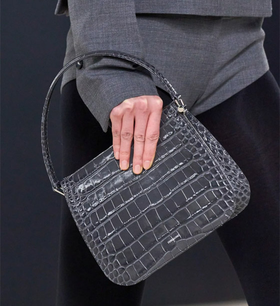 على الرغم من أن معظم السيدات يفضّلن اختيار الحقيبة المربعة الصغيرة؛ ذات اللون الأحادي والمصنوعة من الجلد اللامع ، فقد قدمت دار Ferragamo؛ هذه الحقيبة المصنوعة من جلد التمساح باللون الرمادي فجاءت بتصميم صغير؛ بذراع طويلة دائرية لحملها على اليد ويمكنك اعتمادها في أغلب الإطلالات اليومية.