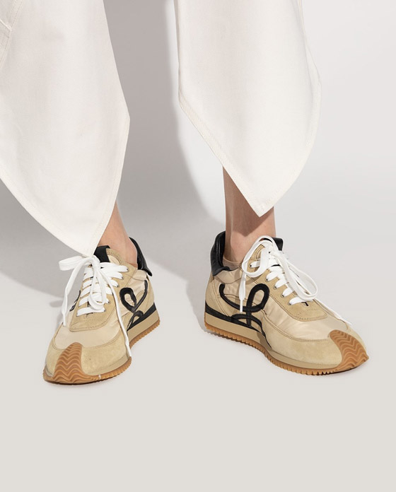 تشتهر «LOEWE» بتاريخها الطويل في صناعة الجلود، لذلك يبدو من الملائم أن تدمج أحذية «Flow Runner» الرياضية هذه المادة الفاخرة مع السمات المميزة لثقافة الأحذية الرياضية المعاصرة، ويصبح الشكل والوظيفة من أهم ملامح إبداع العلامة؛ بالإضافة إلى حرف «L»، المخطوط على الجدران الجانبية، والنعل المميز الذي يتدفق حتى أخمص القدم والكعب.