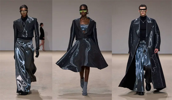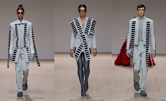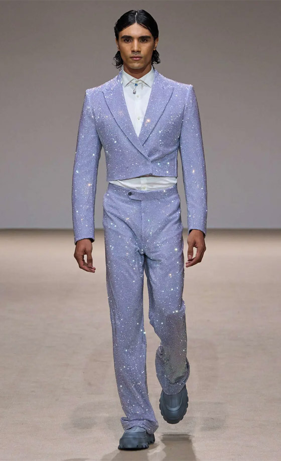 اللمسات البرّاقة حضرت لتُضفي تألقاً على الأزياء النسائية والرجاليّة، فاتخذت شكل تطريزات وزخارف أو تجلّت عبر استعمال لأقمشة غطتها أحجار الكريستال. وقد رصدنا أيضاً استعانة المصمم ببتلات الأزهار الثلاثية الأبعاد التي غطّت الأثواب الطويلة، كما تزيّنت العديد من الإطلالات بقطع معدنيّة مُستطيلة تمّ تثبيتها على أزياء نسائية ورجاليّة باللون الرمادي الفاتح. وقد ظهرت النظارات الشمسيّة الكبيرة المستوحاة من تلك التي يستعملها مايكل سينكو في إطلالته وتُعتبر جزءاً من شخصيته لتكمّل أزياء العرض. تعرّفوا على بعض إطلالات مجموعة Michael Cinco للخريف والشتاء المقبلين فيما يلي.