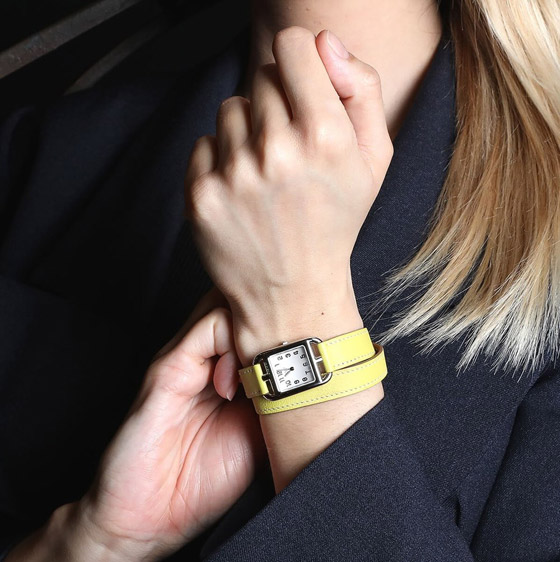 إذا كنتِ تبحثين عن إطلالة أكثر أناقة وثقلاً، فعليكِ باختيار ساعة «Cape Cod Stainless Steel»، من العلامة الفاخرة «HERMÈS»، والمصنوعة من حزام مزدوج طويل من جلد إيتوب سويفت، ومشبك دبوسي من الفولاذ، كما تضم كريستال الياقوت المضاد للوهج، وقرصاً من الفضة الأوبالينية مع حركة كوارتز.