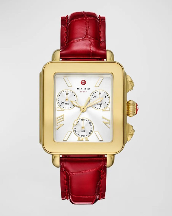 ساعة «Deco Sport 18K Gold-Plated Ruby Red Leather».. من «Michele»: