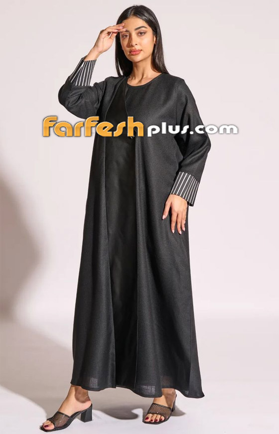 كما الفساتين، سيطرت القصات الملتفة حول الجسم Wrap Cut على العبايات الخليجية، الموديل الذي يساعدك في إخفاء البطن البارز، قدمه المصممون بموديلات منوعة ترضي كافة الأذواق وتناسب إطلالات نهار رمضان 2024، من جهتنا أحببنا العباية السوداء المصممة بياقة V Neck والمخططة على أطراف الأكمام من مجموعة ماركة بلاك روز Black Rose، جربي تنسيقها مع توب أسود وبنطال جينز Wide Leg وتممي اللوك ببوت أسود وحقيبة كتف برغندية.