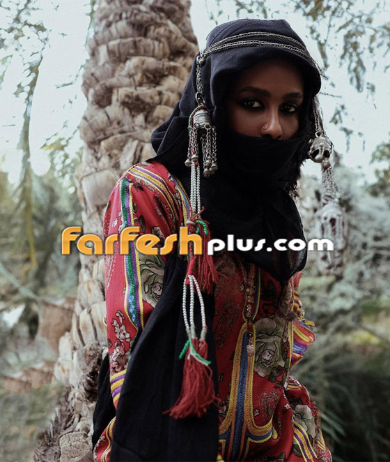 تُعتبر المؤثرة نجود الشمري من مُدونات الموضة اللواتي يحرصن على دوام المشاركة كل عام لهذا الحدث الكبير، فقد اعتمدت برقعاً أسود، ويُعد البرقع من قطع الأزياء الأساسية والتراثية التي تُزين بها المرأة العربية ويميزها، وأحد المظاهر التقليدية التي تعكس احتشام ورقيّ المرأة قديماً وحديثاً، ويُغطي البرقع نصف الوجه، ويأتي بتصاميم مختلفة مثل الحلي الذهبي حيث يُزينه على جانبيه. وأكملت إطلالتها بعباية شيفون سوداء جاءت الأكمام طويلة وأساور مُزينة بتطريزات حمراء مع الاستراس، أما الصدر فجاء مُطرزاً بخطوط حمراء، واستكملت إطلالاتها بغطاء رأس أسود حتى منحتها إطلالة تراثية جذابة.