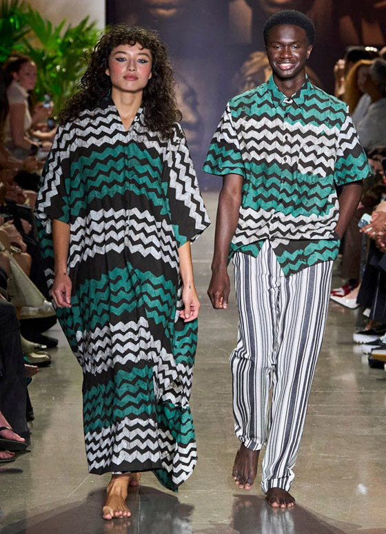 تميزت بعض الجلابيات التي قدمتها الدور العالمية ضمن مجموعات الأزياء الجاهزة بألوانها المتعددة، أدرجت ماركة Studio 189 ضمن مجموعتها لربيع 2024 جلباباً جمع بين اللونين الأبيض والأخضر، وزين بخطوط أفقية سوداء متعرجة، لا تترددي في تنسيقه مع حذاء أسود، واحملي حقيبة Tote سوداء كبيرة، واختاري مجوهراتك من الذهب الأبيض.