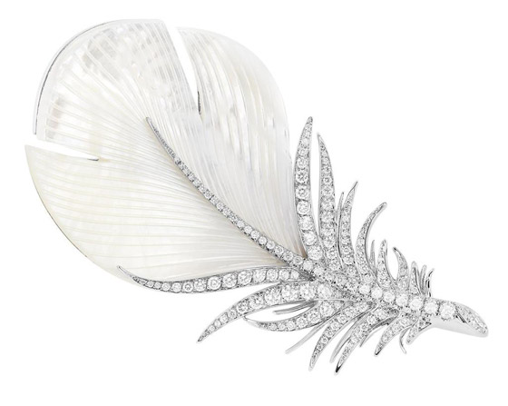 تعد البروشات بتصميم الريش من أبرز صيحات الموضة الرائجة، والتي تمنحك اطلالة أخاذة في المساء والسهرات، وستكون مثالية لإكمال اطلالتك في يوم الأم. قدمت ماركة بوشرون Boucheron هذا البروش الفخم بتصميم الريشة الكبيرة من الذهب الأبيض ومرصع ببريق الألماس لسحر لا يضاهى.