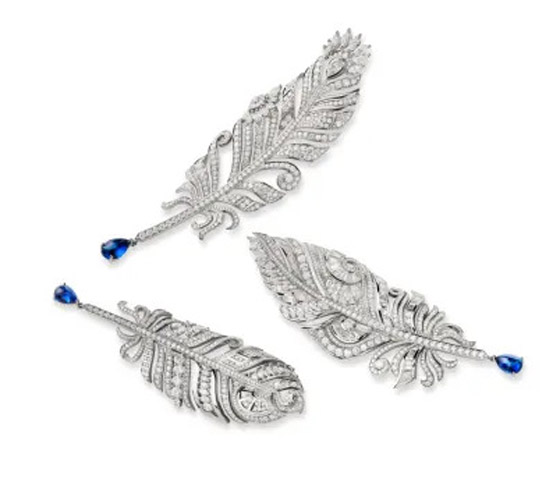 وبتصاميم رقيقة وفاخرة في نفس الوقت، أبدعت دار شوبارد Chopard بروشات الريش الماسية مع لمسة جذابة بحجر الياقوت الأزرق.