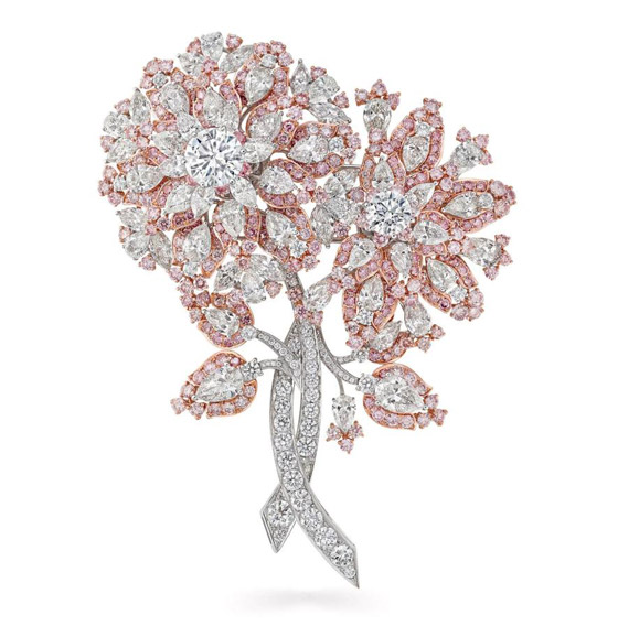 أيضاً تميل كثير من النساء لاختيار البروشات بتصاميم الورود الأخاذة للمسة فخمة ورومانسية في نفس الوقت، والتي تليق بمختلف الأزياء. أعجبنا هذا البروش الفخم بتصميم الورود والمرصع بالكامل بالألماس ويمزج بين الذهب الأبيض والوردي في تناغم يخطف الأنفاس، وهو من غراف Graff.