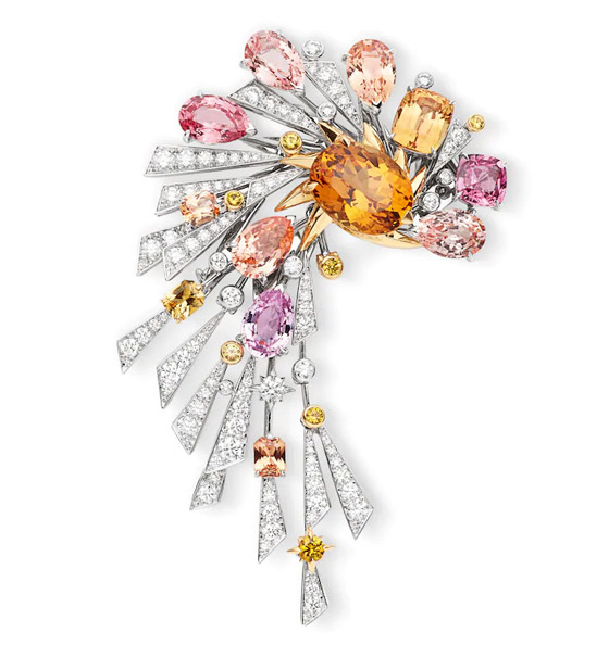 إذا أردت إضافة لمسة حيوية لإطلالتك، فلتختاري البروش المرصع بأحجار كريمة ملونة، وخاصةً التصاميم التي تجمع بين أكثر من حجر ولون، مثل هذا البروش من شوميه Chaumet.