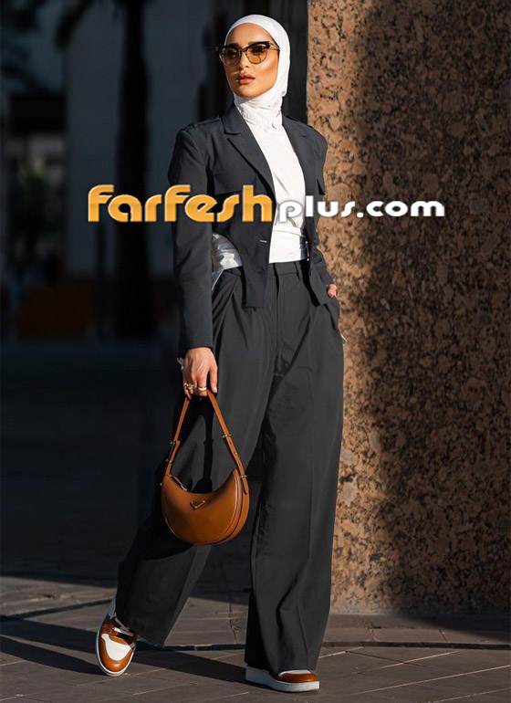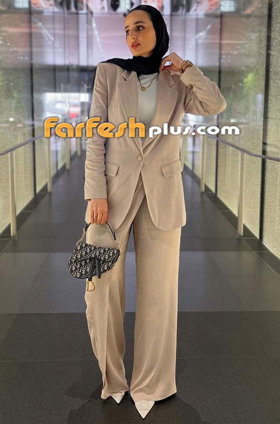 لم تغب البدلات المصممة بقصات ناعمة وألوان ترابية مستوحاة من الطبيعة عن مشهد الموضة، وهى من الصيحات المناسبة لإطلالات المحجبات لا سيما إذا كانت مميزة بقصاتها الواسعة مثل البدلة البيج التي ظهرت بها مؤثرة الموضة ميسون الشيخ والتي اختارت موديلاً سادة مصمماً ببنطلون واسع، ونسقته مع توب كريمي، وانتعلت حذاء Pointed أبيض، وزينت رأسها بالطرحة السوداء، وتممت أناقتها بحقيبة Saddle المطبعة.