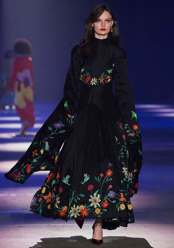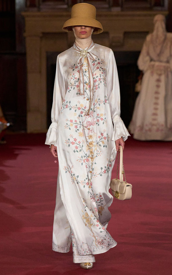 واكبي آخر اتجاهات الموضة الدارجة في فساتين ربيع وصيف 2024، وهي صيحة الكاب التي تليق بالمحجبات لتمنحهن إطلالة راقية؛ مثل هذا الفستان من ماركة ريتشارد كوين Richard Quinn المزين بنقشة الورود الملونة مع كاب طويل يزينه، وكما تلاحظين، الفستان يتسم بالاحتشام والحيوية في الوقت نفسه؛ إذ يجمع بين ألوان مبهجة عديدة، ولتكتمل أناقته، يمكن أن تنسقي معه أكسسوارات باللون الأسود.