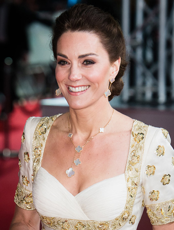 وأبهرت كيت ميدلتون الحضور بجمالها وأناقة إطلالتها عام 2017 خلال حضورها حفل EE British Academy Film Awards بدورته الـ70، حيث اعتمدت صيحة الأيلاينر المجنح الرفيع مع الماسكرا البارزة وأحمر الشفاه الخفيف، ونسقت مع مكياجها تسريحة شعر ناعمة مع الغرة البوف.
