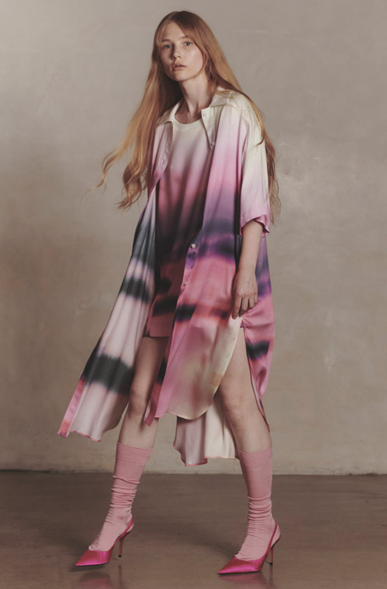 سجلت بعض صيحات التسعينات عودة لا يمكن تجاهلها هذا الصيف، فرأينا الفساتين المطبعة بتقنية الـTie Dye في أكثر من مجموعة، ما يعني أنها ستكون نجمة الموسم، واستخدمت تدرجات كثيرة من نفس اللون، والنتيجة قطع تراعي الأناقة التي تبحثين عنها. رصدنا لدى ماركة Benjamin Benmoyal فستاناً قصيراً واسعاً منسقاً مع تونيك طويل يغطي الركبة من نفس الطبعة مفتوحاً من الأمام ومنسقاً مع حذاء مدبب باللون الزهري الفوشيا، تممي هذا اللوك بحقيبة كتف صغيرة من نفس لون الحذاء.