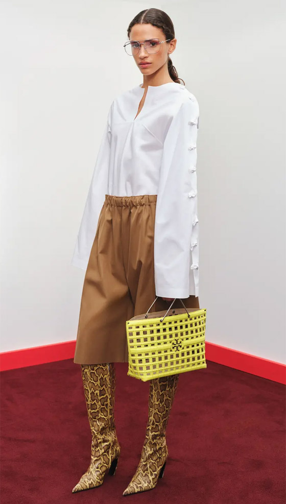 ترافقت الأزياء مع مجموعة متنوعة من الحقائب والأحذية الملونة، بالإضافة إلى الأحزمة الجلدية والأقراط الكبيرة. كل ذلك يجعل من مجموعة Tory Burch Cruise 2025 خير تعبير عن أسلوب "السهل الممتنع"، الذي يشجع على تبني أسلوب شخصي في مجال الأناقة يعكس الرضا عن الذات والتألق بكل ثقة.