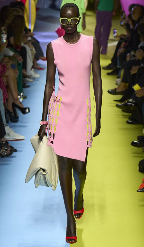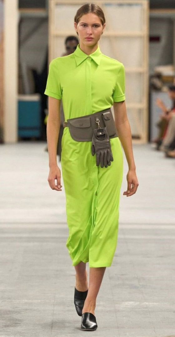 الفستان الفوسفوري مع حقيبة على الخصر: