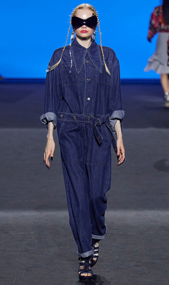 استحوذت الأزياء الدنيم على اهتمام كبريات دور الأزياء العالمية هذا العام، وقدمت منها تشكيلة واسعة من الجمبسوت، بعض القطع تميزت بقصاتها الساترة التي تناسب إطلالات المحجبات، من جهتنا أحببنا الجمبسوت الواسع منخفض الخصر من مجموعة ماركة Greedilous، اطوي حوافه مثل العارضة، ونسقيه مع صندل دنيم بكعب عريض متوسط الطول، وزيني رأسك بطرحة أو توربان بلون ترابي يتناغم مع لون بشرتك، وأكملي الطلة بحقيبة حمراء متوسط الحجم.