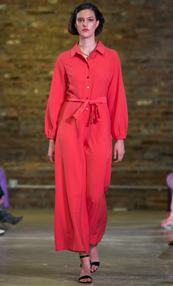 تجرأي واختاري الجمبسوت بلون زاهِ كالأحمر الرائج بقوة هذا الصيف، سيعجبك الموديل المصمم على طراز القميص والمميز ببنطلونه الفضفاض، من مجموعة ماركة نيجريس ليبروم Negris LeBrum، نسقيه مع صندل نيود أو باللون الأسود، وغطي رأسك بطرحة ترابية اللون، وزيدي اللوك فخامة بحقيبة سوداء مبطنة متوسطة الحجم مزودة بحزام طويل يمكنك من تعديل طولها لحملها بأكثر من طريقة.