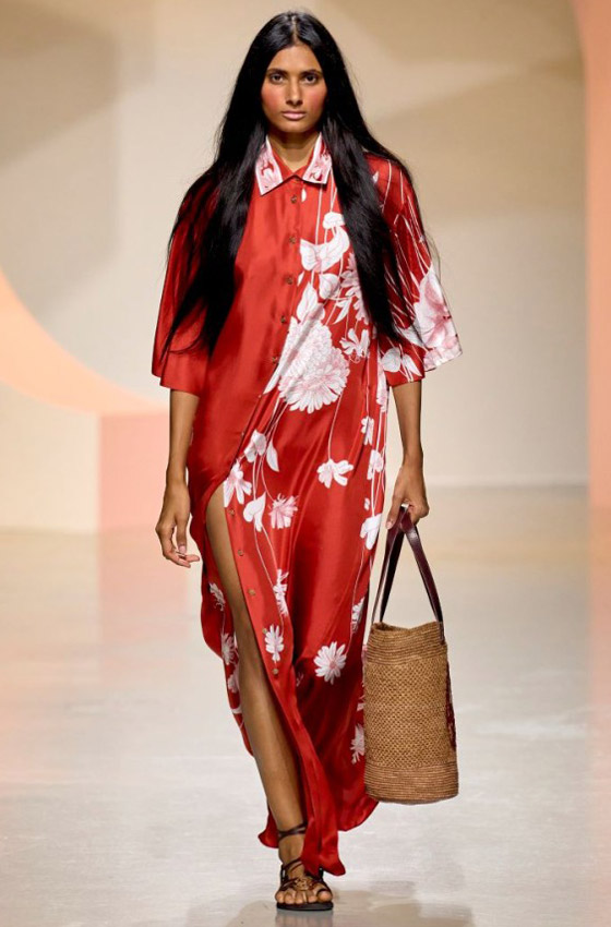 اختاري الفساتين الحريرية المعرقة بزهور ونباتات باللون العادي من الحرير أو الساتان، ونسِّقيها مثل دار ليونارد Leonard مع حقيبة من القش مع صندل غلادياتور بلون القهوة من الجلد الطري ويتسم بطابع مسطح عملي.اكتشفي معنا موديلات فساتين ساتان حرير قصيرة لصيف 2024