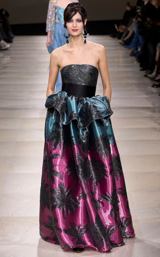 كما نفذت دار أرماني بريفيه Armani Prive الفساتين الراقية لربيع وصيف 2024 مصنوعة من اللوركس بألوان الفوشيا الماجنتا والأزرق، وتزدان بتطريز بالخرز البرَّاق، وهي تتسم بقصة خالية من الأكمام، مع تنورة منفوخة طويلة.