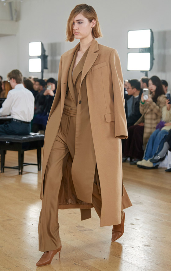 في عرف خبراء وعشاق الموضة يعتبر الجملي هو الأسود الجديد لكونه من الألوان التي يسهل تنسيقها مع مختلف الملابس المتوفرة في خزاناتنا، رصدنا في مجموعة ماركة يودون تشوي Eudon Choi إطلالة مونوكروم مكونة من بدلة أدخل جاكيتها في البنطال ليبرز طول العارضة، نسقت مع معطف متوسط الطول وبوت بكعب عالِ رفيع، أكملي هذا اللوك الأنيق بأقراط Studs من الذهب الأصفر واحملي حقيبة كتف سوداء متوسطة الحجم.