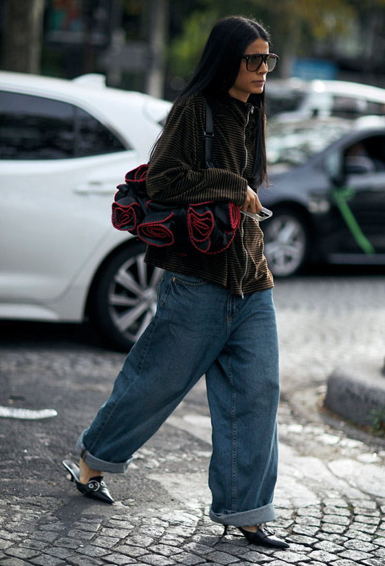 - البنطلون الجينز الواسع: تناسبه جميع الأحذية المصممة بمقدمة مدببة، وفي حال قمتِ بثني حوافه، جربي تنسقيه مع الأحذية المدببة بالكعوب الكيتن القصيرة، اختاريها بجزء مفتوح من الخلف Slingback Shoes أو انتعلي الحذاء الـMule الدارج.
