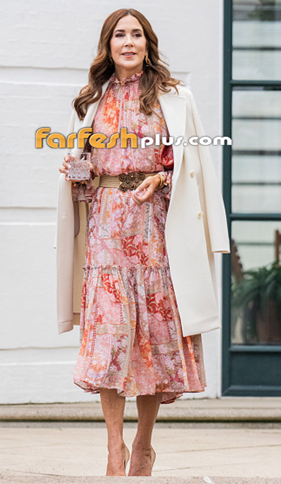 من أجل استقبال الرياضيين الدنماركيين الذين شاركوا في الألعاب الأولمبية والبارالمبية مؤخراً اختارت الملكة ماري ملكة الدنمارك إطلالة شديدة الأناقة نسقت خلالها فستاناً مطبعاً بالزهور مع معطف أبيض اللون. حيث اختارت الملكة ماري، البالغة من العمر 52 عامًا، إطلالة أنيقة ومليئة بالألوان الزاهية التي ضمت الوردي الفاتح والدراقي، وارتدت فستاناً من زيمرمان Zimmermann تميز بياقة عالية وأكمام طويلة وتنورة متدرجة، وأكملت أناقتها بحزام بوهيمي التصميم مع إبزيم نحاسي من إترو Etro واستعانت بمعطف أبيض اللون ليضفي الفخامة على إطلالتها الصيفية. وكلمسة أخيرة انتعلت حذاء من جلد الثعبان بلون نيود من جيانفيتو روسي. ارتدت أقراط Kharisma من دولونغ Dulong وتركت شعرها ينسدل متموجاً فوق كتفيها بكل جمال واكتفت بمكياج ناعم وغلامور في الوقت نفسه.