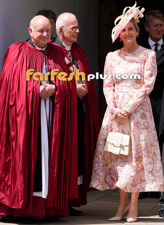 من أجل المشاركة في احتفال يوم الرباط في قصر وندسور اختارت صوفي، دوقة إدنبرة، إطلالة مبهرة باللون الوردي الصيفي. حيث ارتدت الدوقة فستاناً زهرياً مطبعا بالزهور من زيمرمان Zimmermann، والذي تميز بتصميم بديع تتداخل فيه الأوراق والزهور الوردية. نسقت إطلالتها مع قبعة رائعة من تصميم جين تايلور Jane Taylor، وهي قبعة سبق أن انتعلتها أكثر من مرة. كما حملت حقيبة من ستراثبيري Strathberry أتت تمزج بين لون الفانيليا واللون النيود، ونسقتها مع حذاء عالي الكعب من برادا Prada بلون نيود أيضاً.