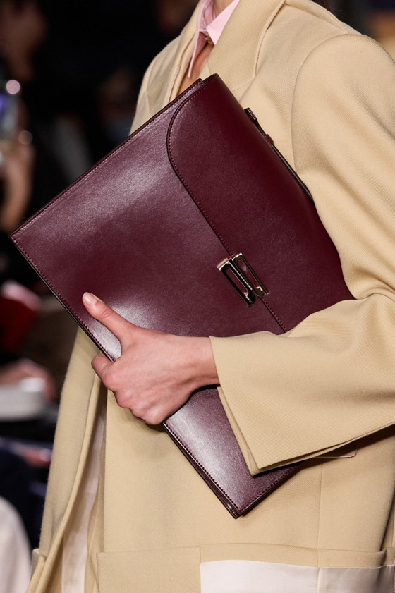من أبرز قطع الإكسسوارات، التي تكمل إطلالتكِ، هي الحقيبة. ويأتي الإكسسوار الذي لا غنى عنه في مظهر النساء، باللون البرغندي الأنيق في شتاء 2024، فقد قدمته مصممة الأزياء فيكتوريا بيكهام في أحدث مجموعاتها، وظهر على هيئة الكلاتش، الذي يزيد أناقة المرأة العاملة، ويضيف لمسة عصرية إلى إطلالتها.