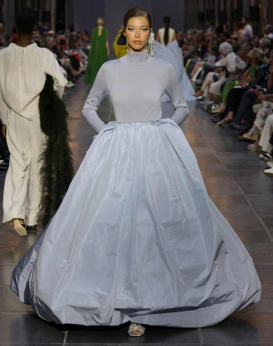 لا يُشترط أن يكون الفستان السواريه بقصّة بسيطة حتى يبدو ناعماً، بل يمكنك التألق بفستان بقصّة الأميرات المنفوشة، وفي نفس الوقت يتمتع بطابع هادئ وراقٍ، بفضل لونه وتصميمه الخالي من التعقيدات، وهذا ما جسدته ماركة ناتان Natan بهذا الفستان الأزرق الفاتح الذي يتألف من توب بسيط بأكمام طويلة وياقة مرتفعة بقصّة محتشمة، مع تنورة ساتان منفوشة تمنحك إطلالة مستوحاة من أميرات ديزني، ومع ذلك، يبدو رقيقاً ورومانسياً، ويمكن أن تنسقي معه بعض الأكسسوارات البرّاقة لتضيف لمسة فاخرة له.