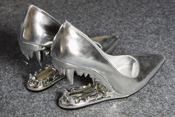 يمكنك سيدتي إذا كنت تبحثين عن حذاء غريب ومميز انتعال هذا الحذاء الفضي من سبتوولفز Sept Wolves الذي يتميز بكعب ودج، ويجسّد أنياب الحيوانات البرية المتوحشة، ويتسم الحذاء بطابع مريح، وهو يليق بالتنانير أو الفساتين القصيرة، ليبدو الحذاء أبهى وأكثر جمالاً.