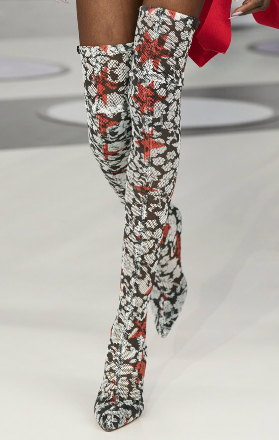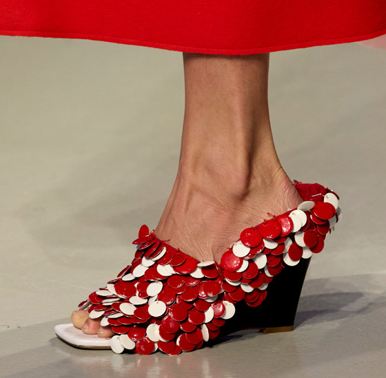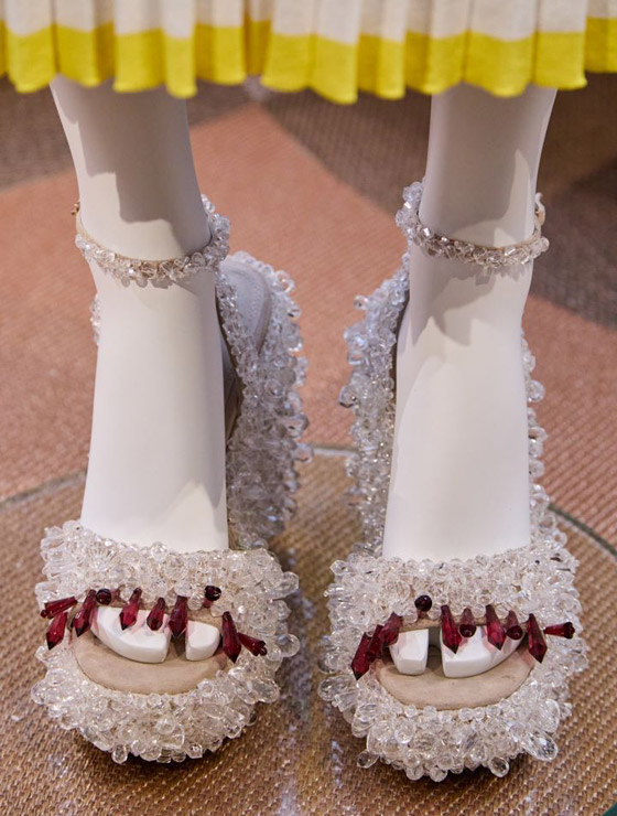 وصممت دار دوبل جاي Double J الحذاء المفتوح الودج والمصنوع من أحجار الكريستال الشفافة والياقوتية، التي تزخرف كامل الواجهة والكعب المتصل، وهو قالب يتميز بالراحة رغم علوه الشاهق.