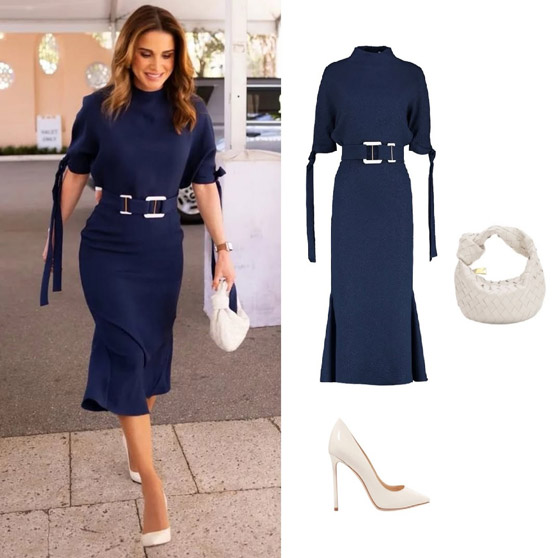 منذ 5 أيام وقبل تنصيب الرئيس الأميركي دونالد ترامب، التقت ملكة الأردن بالسيدة الأولى الأميركية ميلانيا ترامب. وبمعزل عما دار بينهما من أحاديث عالمية، التقطت عدسات الكاميرات أناقتهما التنافسية. لهذا اللقاء الرسمي العالمي، اختارت الملكة رانيا فستان Pedernal باللون الكحلي من ماركة Edeline Lee. ونسّقت معه حذاء Jimmy Choo الأبيض بالكعب العالي، كما حملت حقيبة يد White Mini Jodie Bag من علامة Bottega Veneta.