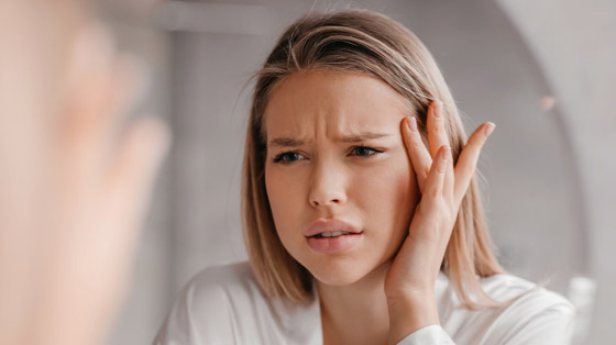 تشمل الأعراض الرئيسية للبشرة الدهنية المُصابة بالجفاف، ما يلي: