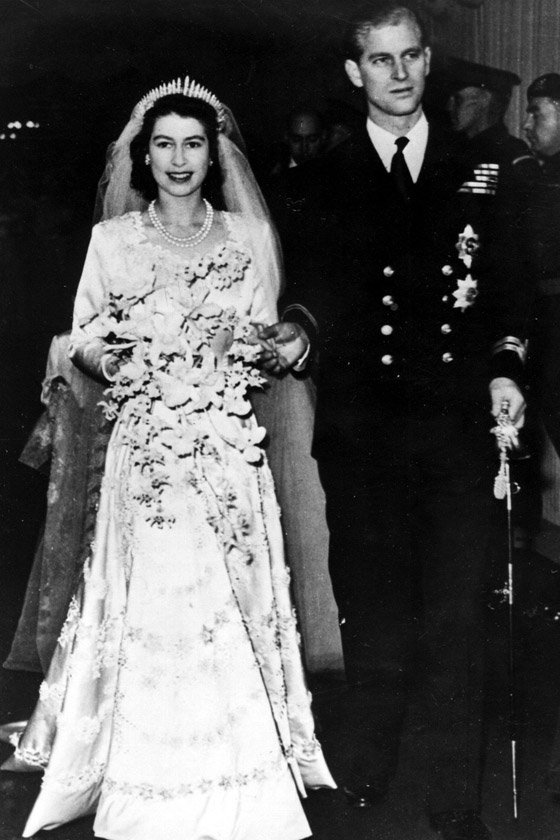 2. فستان زفاف الملكة إليزابيث: كانت الملكة إليزابيث الثانية تبلغ من العمر 21 عاماً عندما تزوجت من الأمير فيليب في دير وستمنستر في عام 1947. عندما تُلقي نظرة سريعة على فستان الملكة لا تتوقع أنه باهظ الثمن إلى هذه الدرجة، لكن في الواقع كان الفستان من الساتان العاجي المزين بـ10 آلاف لؤلؤة بيضاء وتتخلله خيوط من الفضة. وقد كانت طرحتها بطول 5 أمتار وثبتت بتاج ورثته عن والدتها.