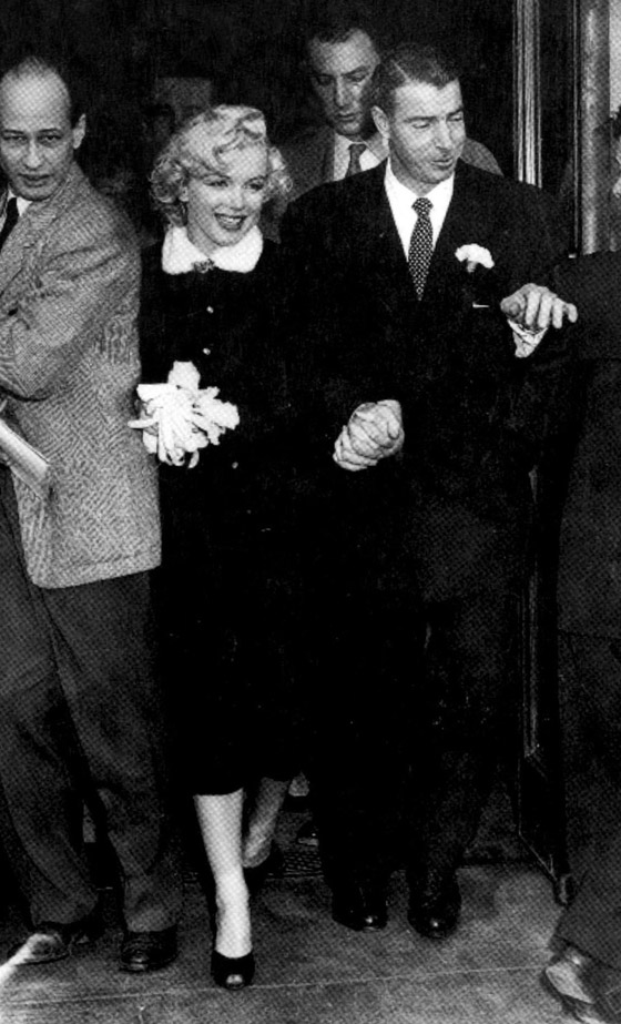 7. فستان زفاف مارلين مونرو: لعل فستان زفاف النجمة مارلين مونرو هو الفستان الأقل تقليدية في هذه القائمة، إذ اختارت مونرو ارتداء الأسود في زفافها من لاعب البيسبول المتقاعد جو ديماجيو في عام 1954. فقد كان فستانها عبارة عن تنورة سوداء مع طوق فرو أبيض، وحملت باقة من زهور الأوركيد البيضاء.