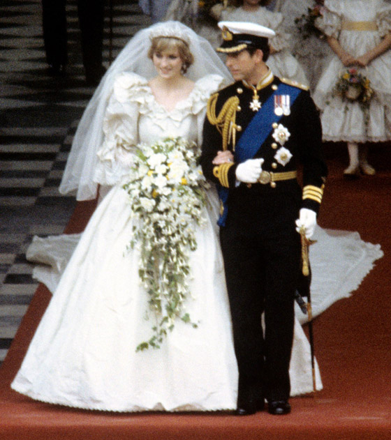 8. فستان زفاف الأميرة ديانا: عندما تزوجت الأميرة ديانا من الأمير تشارلز في كاتدرائية سانت بول عام 1981 ارتدت فستاناً لا يزال أغلبنا يذكره إلى اليوم. كان فستان الأميرة من الحرير العاجي من تصميم ديفيد وإليزابيث إيمانويل. وتم تقييمه في ذلك الوقت بقيمة 151000 جنيه إسترليني، فهو مزين بالدانتيل، والترتر، والتطريز اليدوي و10000 لؤلؤة.