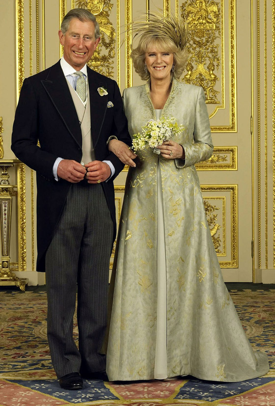 9. فستان زفاف كاميلا بولز: عندما تزوجت كاميلا بولز من الأمير تشارلز، أمير ويلز، في عام 2005 لم ترتدِ الفستان الأبيض واختارت أن يكون الزواج مدنياً. وارتدت دوقة رداء أزرق فاتح اللون مع تطريز ذهبي، فوق فستان شيفون من آنا فالنتين.