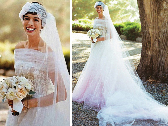 13. فستان زفاف آن هاثاواي: تزوجت آن هاثاواي من آدم شولمان في عام 2012، في حفل أقيم في الهواء الطلق عند غروب الشمس في كاليفورنيا. وارتدت الممثلة ثوب زفاف من تصميم فالنتينو، الذي يتميز بالدانتيل والتطريز، مع طرحة طويلة وغطاء للرأس.