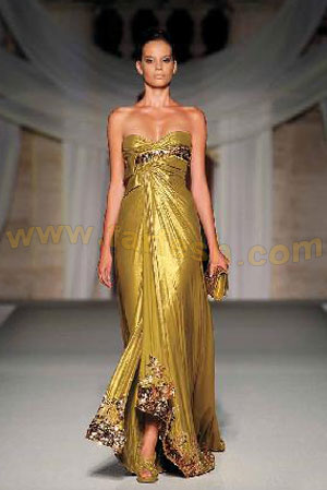 هل زالت موضة الفساتين الضيقة عند الصدر وتتسع تدريجاً حتى القدمين؟