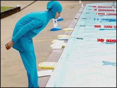 وكان هذا الامر مشكلة لنا في موسم الصيف الأخير". ويتكون "المايوه الشرعي"، الذي يعرف أيضاً باسم "البوركيني"، من بنطلون وبلوزه ذات أكمام طويلة ملتصق بها غطاء للرأس. وبدأ تداوله وبيعه على شبكة الإنترنت في ألمانيا وتبلغ تكلفته نحو 66 يورو. وقامت ولاية برلين باختبار جودة "البوركيني" في حمام سباحة منطقة "نويكولن" التي تسكنها أغلبية من الأجانب ، لمعرفة درجة مناسبته للسباحة. وإذا نجح الاختبار سيسمح للمسلمات بالسباحة بهذا الزي اعتبارا من الصيف المقبل.العربية