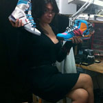 وفي أحذيتها الرياضية الجديدة تخفى بطاريات صغيرة جدا في الكعب، تتصل بأسلاك غير مرئية مع القياطين، ويمكن مباشرة العمل بوجود عدة أوامر: زر، مفتاح، متحسس للوزن وهو الذي يقيس علاقة وزن الإنسان بالحذاء الذي يختاره وما إذا كان يناسبه أم لا.