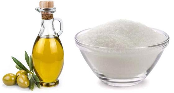 يخلط نصف كوب من ملح البحر مع 2 ملعقة كبيرة من زيت الزيتون النقي. بعد ذلك، يضاف عصير 3 ليمونات للخليط مع التقليب الجيد. يستخدم هذا المقشر في خلال إسبوعين ويحفظ في وعاء محكم.