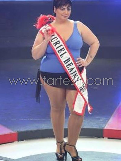 ،قوامها بلباس البحر أمام لجنة التحكيم. يبلغ وزنها 115 كلغ وطولها 1.73 سنتم