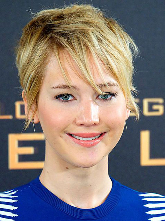 جينيفر لورانس: كانت ولا تزال Jennifer Lawrence مثالاً تحتذي به النساء في جميع أنحاء العالم. وقد تميّزت بقصّة شعرها غير المتناسقة لتحقيق إطلالة عفوية.