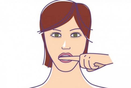 قومي بوضع إصبعكِ بين الشفتين، ثم قومي بفتح فمكِ ثم إغلاقه على الإصبع. قومي بتكرار هذا التمرين لمدة دقيقة واحدة.