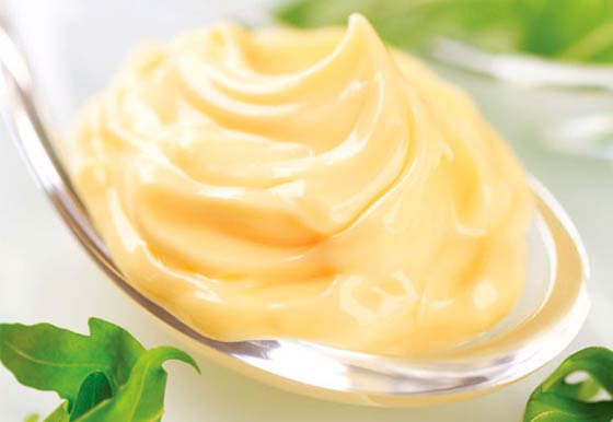 المايونيز:يحتوي المايونيز على نسبة مركزة من البروتينات التي تعمل على إمداد الشعر بالتغذية التي يحتاجها.