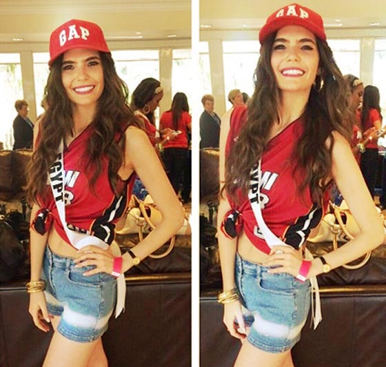 اما الصورة الثانية فارتدت لارا دبانة فيها شورتا قصيرا من الجينز، وقميصا أحمر يكشف هو الآخر عن خصرها، و"كاب" رياضي، ومثبت عليه الشريط الشهير الدال على فوزها بلقب ملكة جمال مصر، وحصدت الصورة أكثر من 700 "لايك".